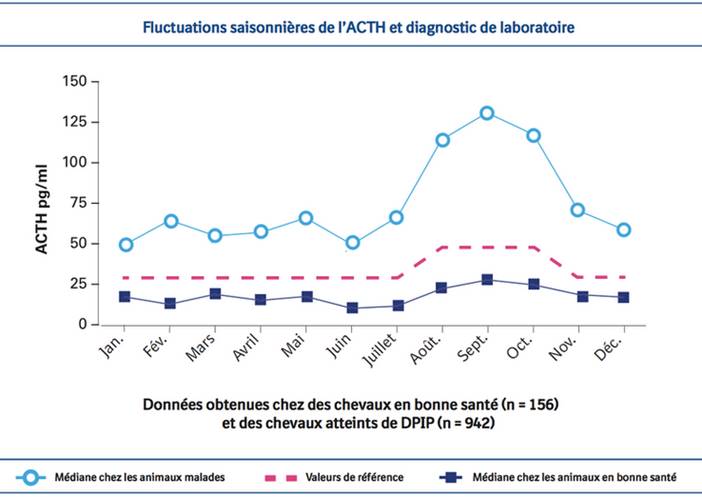 L’injection de TRH va, chez un individu atteint de Cushing, faire augmenter le taux d’ACTH alors qu’un cheval sain ne présentera pas de fluctuation.